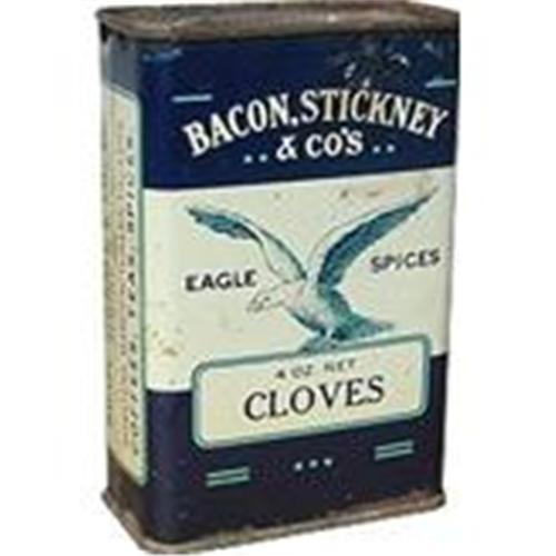 BACON, STICKLEY & CO. SPICE TIN -- c1910, pictures wing spread eagle