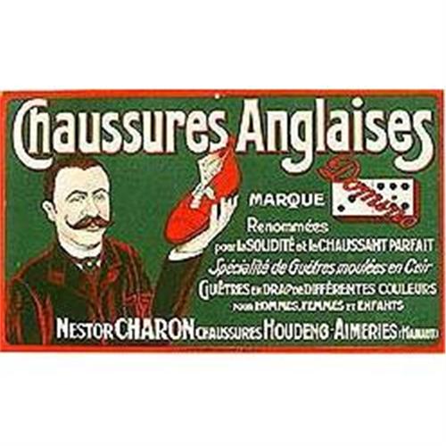 DOMINO SHOES CARDBOARD SIGN 1920, 15½? x 9?, cardboard, guy with mustache holding up an old-fashioned shoe