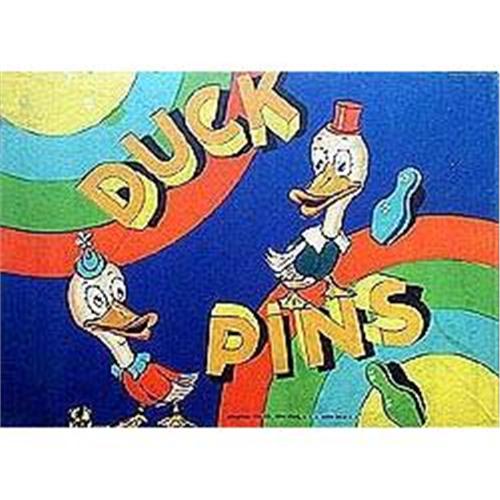 DUCK PINS BOXED GAME - c1929, 1¼" x 9" x 14", complete in colorful box with Donald Duck look alike, bowling game
