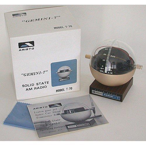 ARISTO SOLID STATE ?GEMINI-7? RADIO, battery operated transistor radio in original box, plays surprisingly well, radios and boxes are in mint condition, complete with orignial instruction booklet and dust cloth, Made in Japan, 1960?s, 5 inches tall.