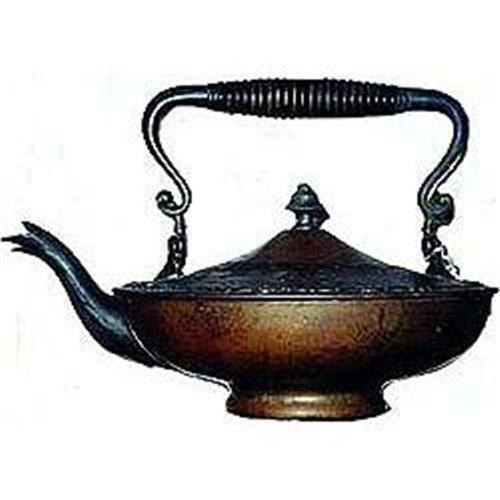 </font></strong>COPPER TEAKETTLE -- 1910?s, c4? x 7? diameter, fancy Aladdin lamp shape, marked Manning Bowman & Co