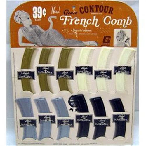 Vintage 1960's French Comb Counter Display, about 16" tall, has 12 assorted colored combs on the display, has am easel back, and in excellent condition.. <BR>