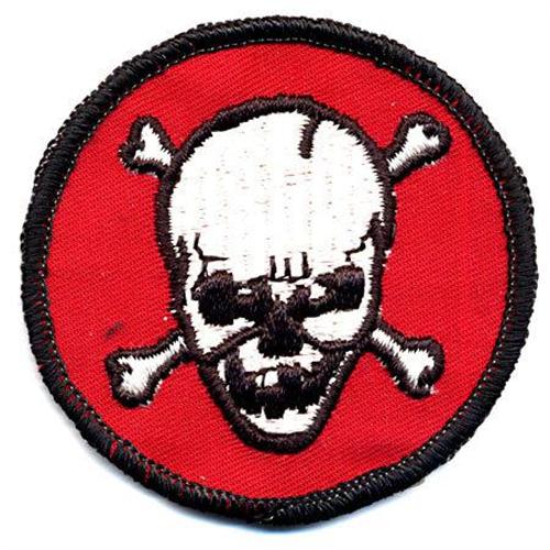 Gorgeous NOS Hippie Patch - 3" round nasty skull on red background