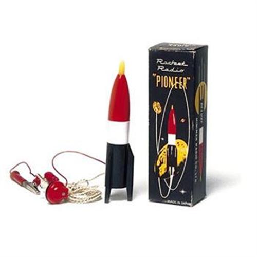 ?PIONEER? ROCKET RADIO crystal radio in original box complete with operating instructions, truly beautiful, Made in Japan, 1950?s, 4 3/4 inches tall. (These were inexpensive toys made over 50 years ago; we cannot guarantee that that these vintage crystal sets will still receive radio broadcast reception.)(