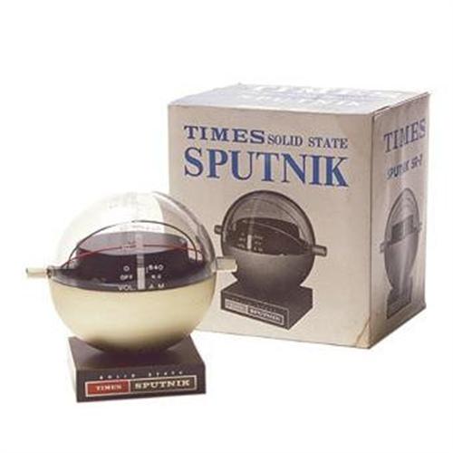 TIMES SOLID STATE ?SPUTNIK? RADIO battery operated transistor radio in original box, plays surprisingly well, radios are in mint condition, but BOXES ARE DAMAGED AND DO NOT LOOK AS GOOD AS THE ONE IN THE PHOTO (still, better than no box), Made in Japan, 1960?s, 5 inches tall.