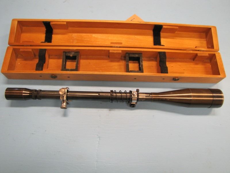 original case J Unertal 10 power Target scope adjustable external mounts serviced by Trace Scopes in 2019 unused since
