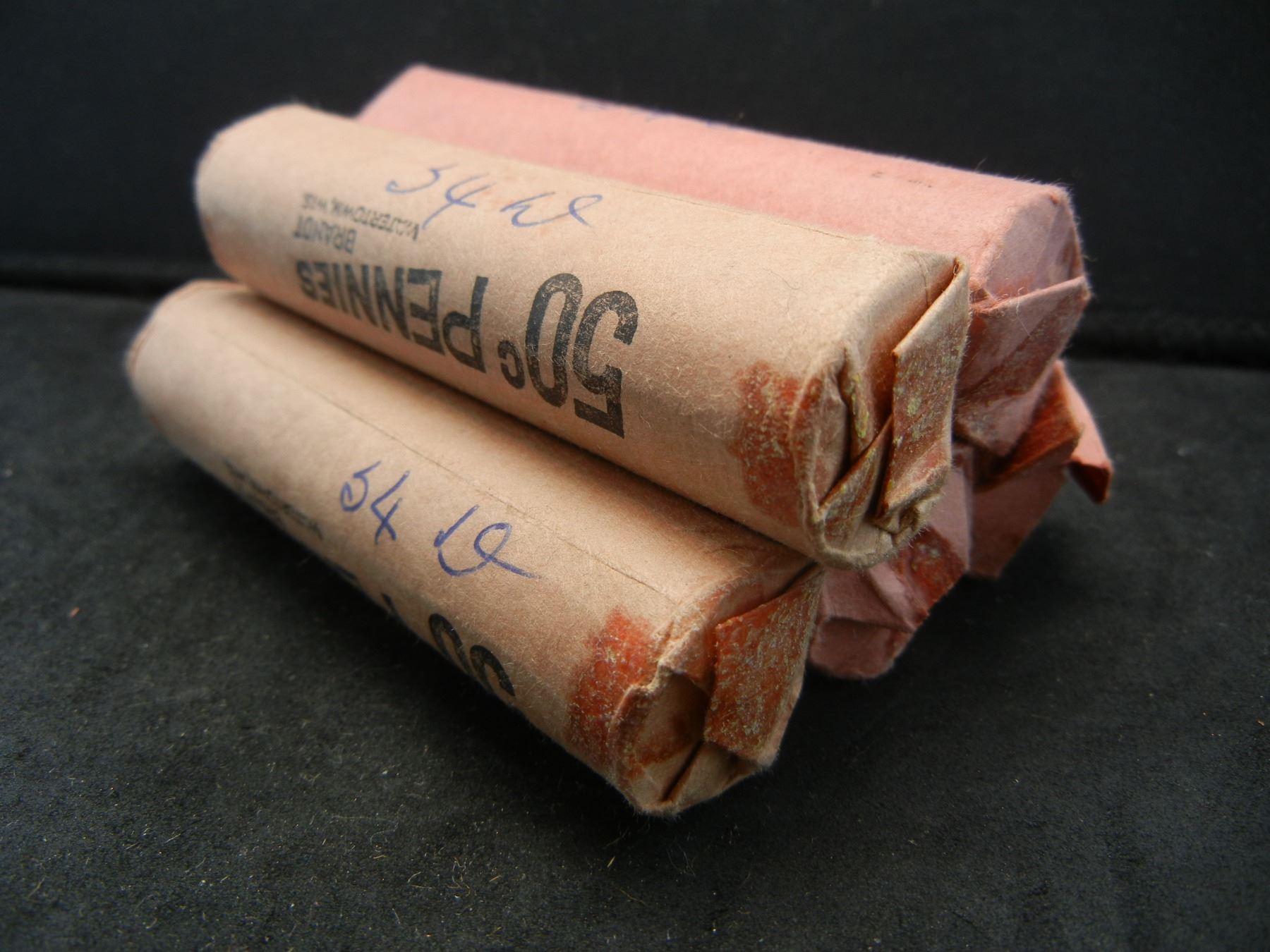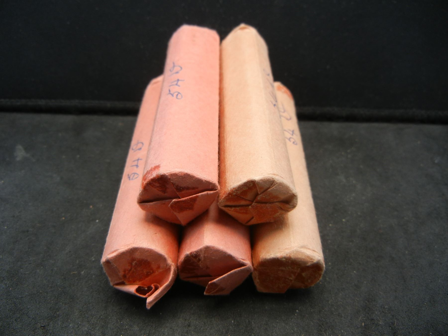 package of 5 rolls 1954-D BU rolls. Has Gotten wet