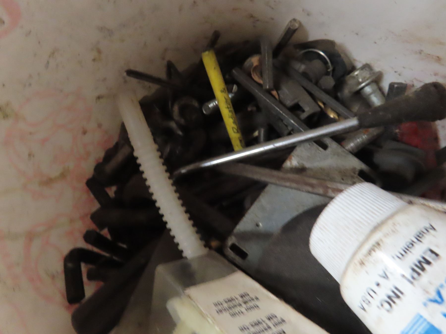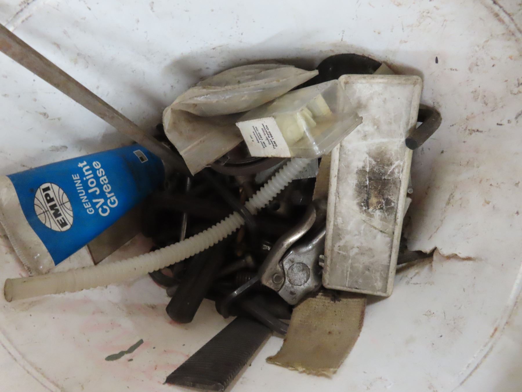 pail of assorted hardware , 4 barrel ford carb parts 351w