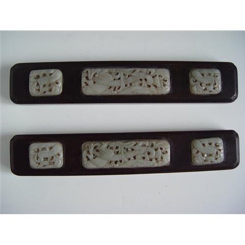 <tr><td>Title:pair chinese carved jade & hard wood scroll</td></tr>