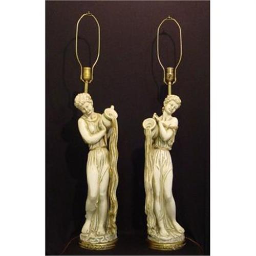 Pair neoclassical figural lamp resed on brass base new wiring ,height 40" height to the socket 28 1/2" base diameter 7 1/2".