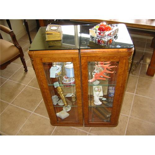 <tr><td>Title:pair of French Burled Walnut Curios!</td></tr>