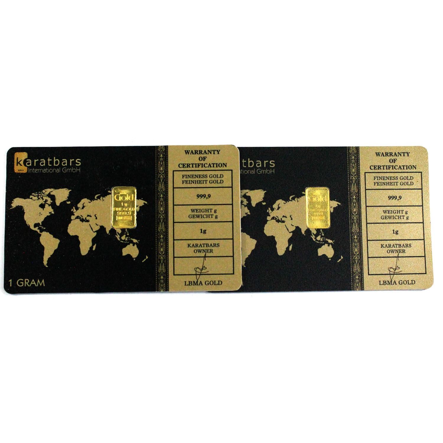 pair of Karat bars 1 Gram .9999 Fine Gold Bars in Hard Plastic Cards. 2pcs (TAX Exempt)