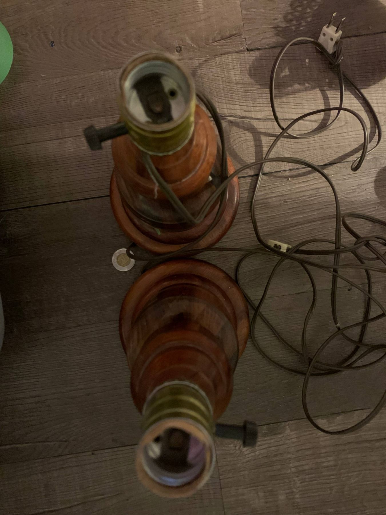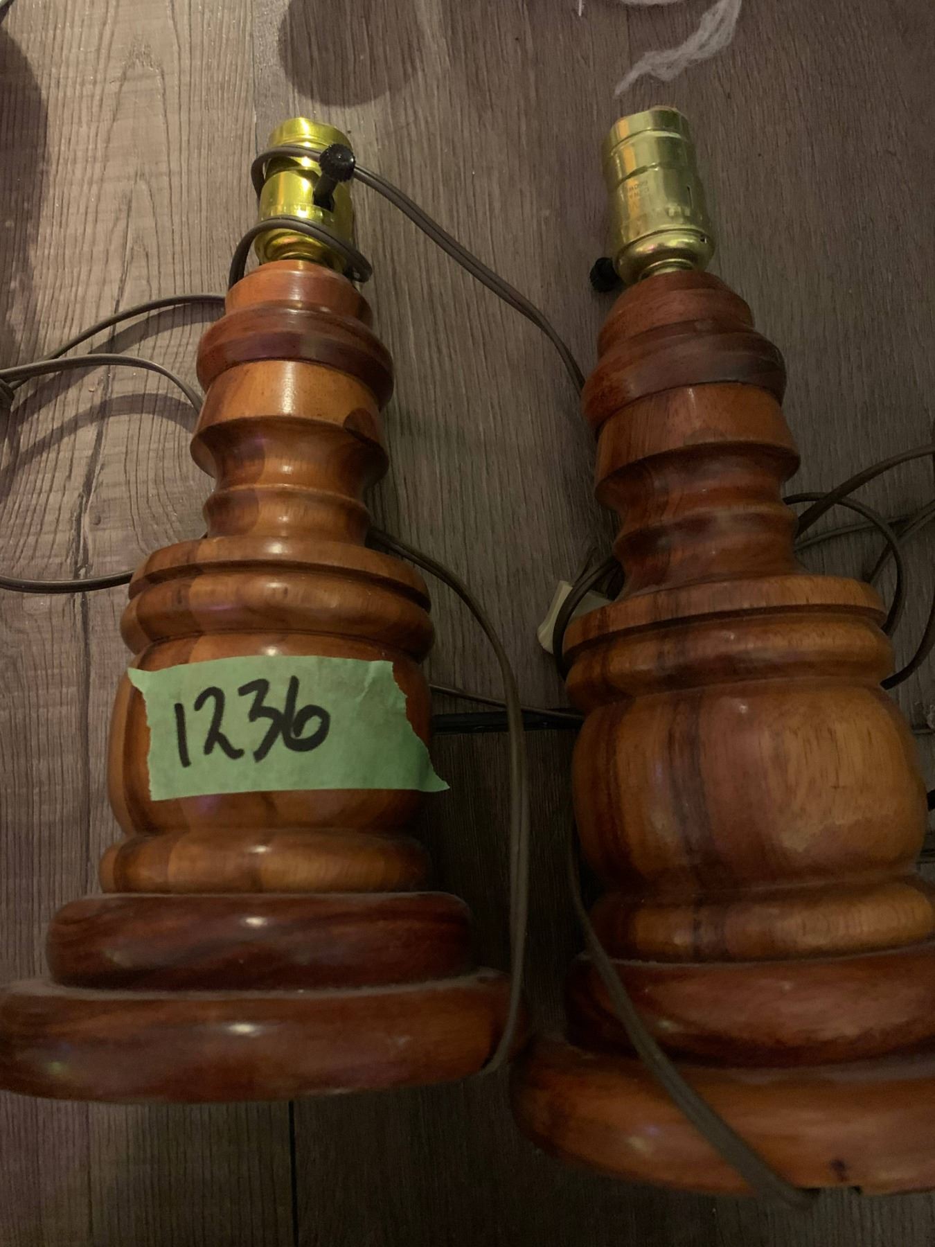 pair of hand turned wooden lampbases, heavy with a beautiful grain