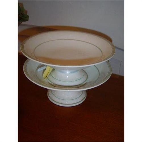 pair of footed " vieux paris " compote in the beautifull and classical gold trim as wel as withe and green pattern .mint condition .