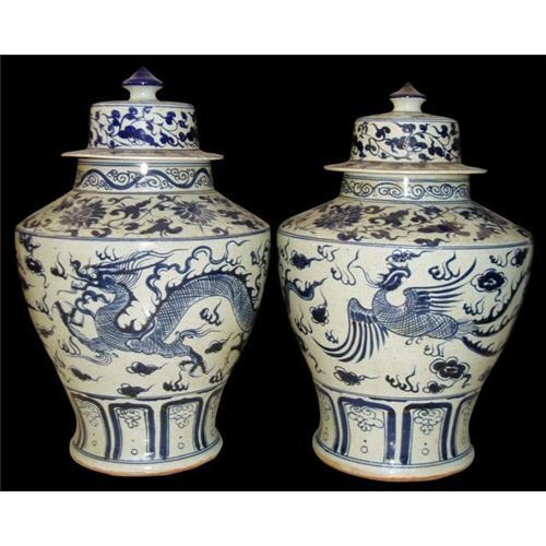 <tr><td>Title:pairs Blue And White Porcelain hat-covered jars</td></tr>
