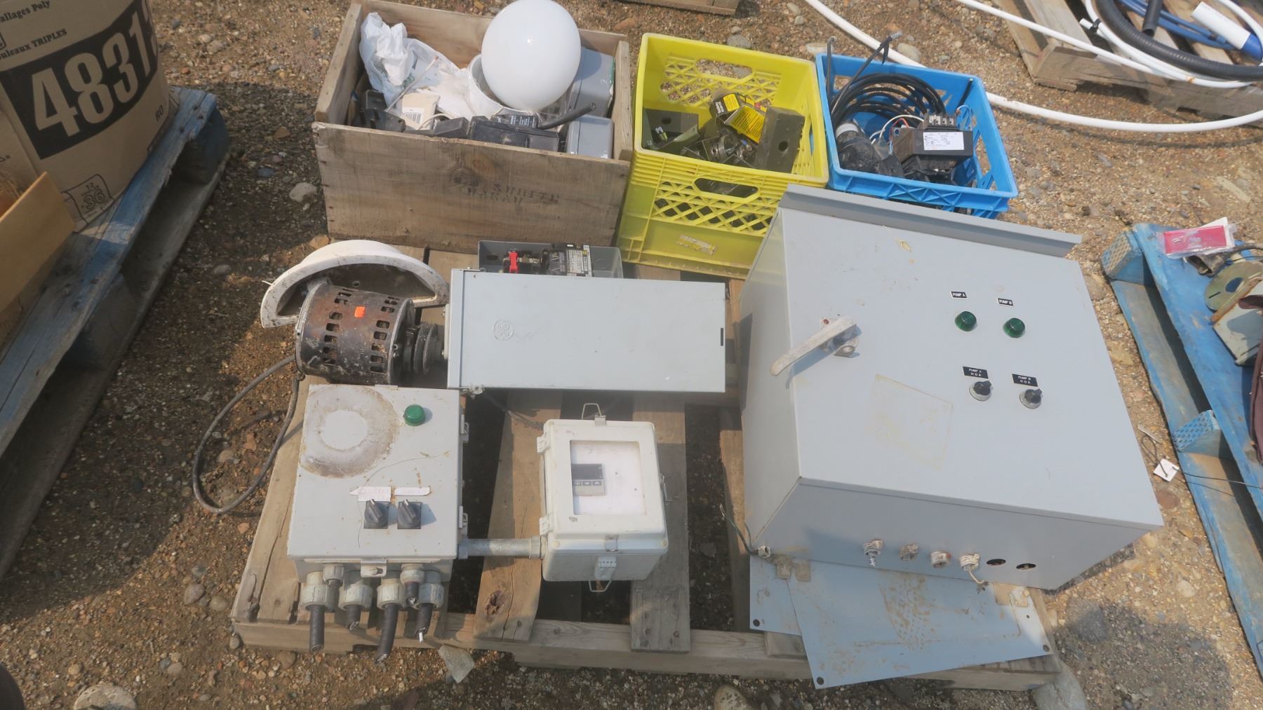 pallet of assorted electrical hardware