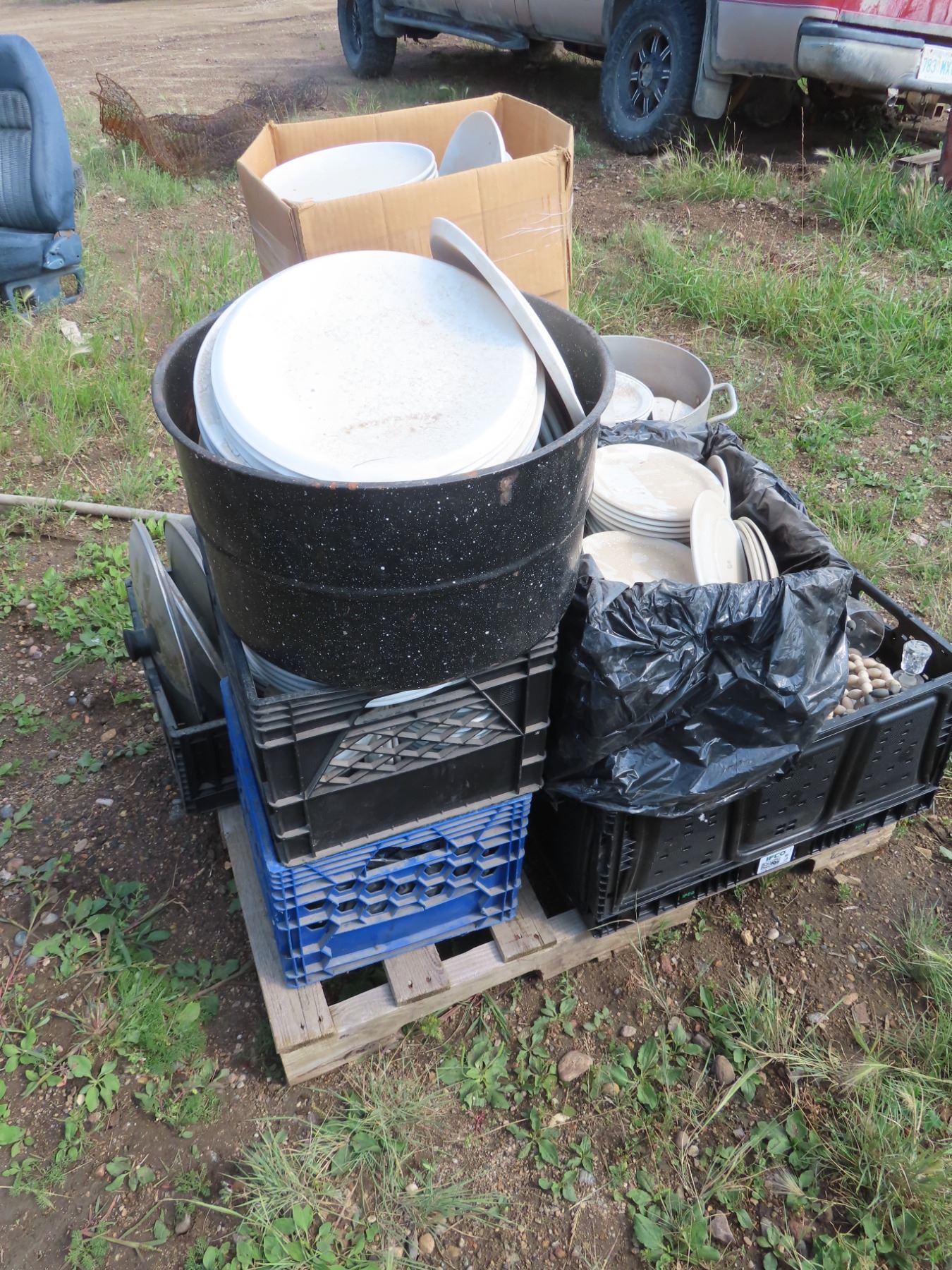 pallet of restraunt quality plates , saucers , bowls , and cups