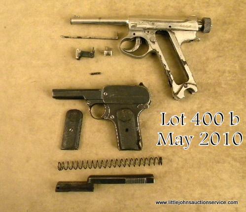 partial Nambu Pistol as parts frame, bbl., trigger guard, some small parts. #6771. Polished over piting. Dreyse .32 cal. auto as parts #3824. Slide #143824. Missing some parts A Gunsmith's lot of 2 registerable firearms. Est. $75-150