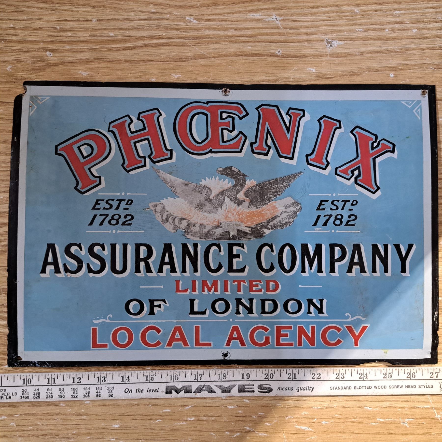 phoenix assurence company 1782 enamal sign 18" by 12" - touch-up