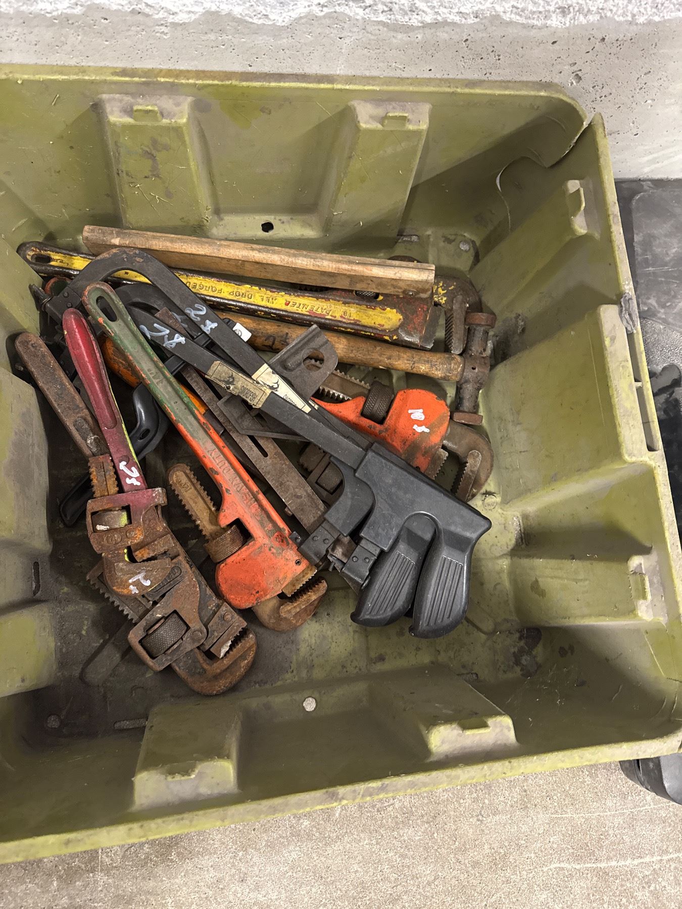 pipe, wrenches, etc., and other tools
