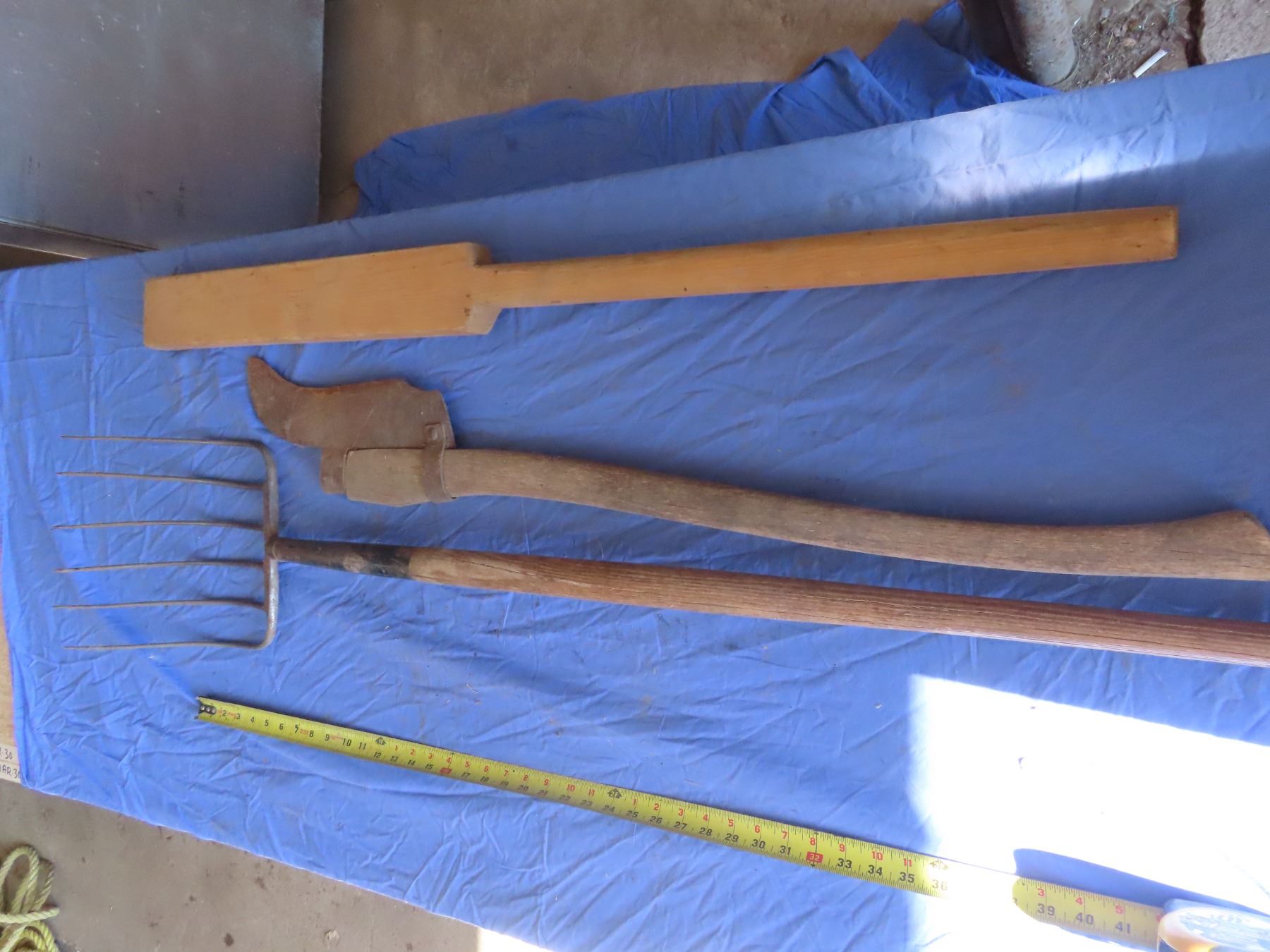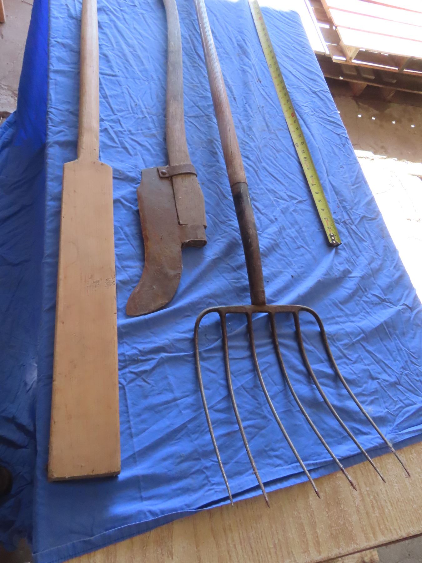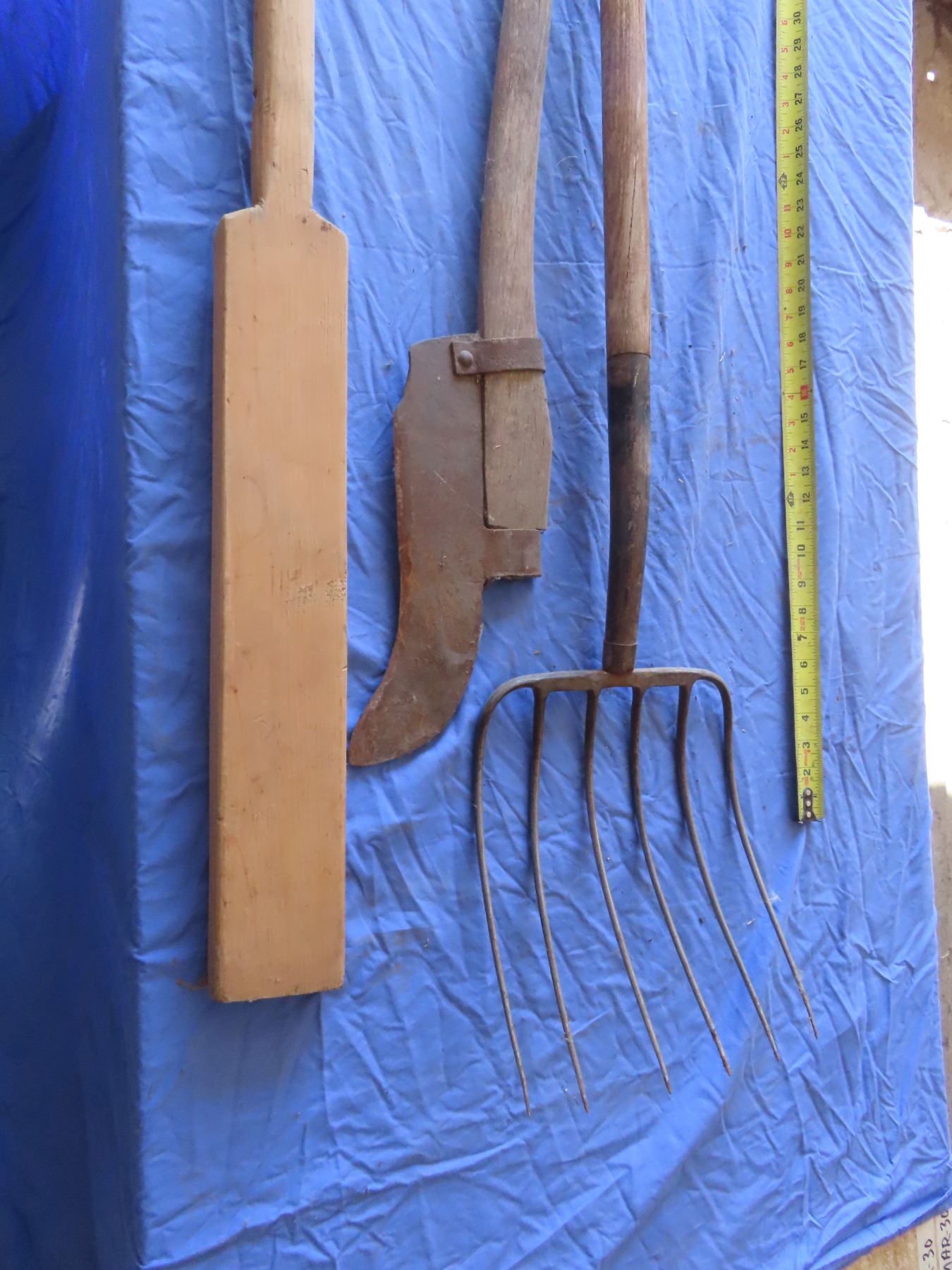 pitch fork , brush cutter , unique paddling stick