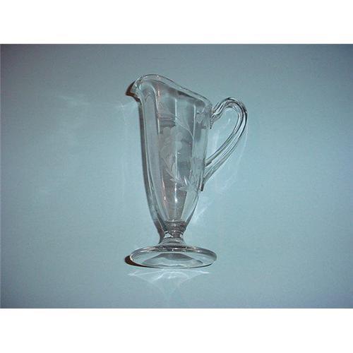 This graceful pitcher is made beautiful by the etchings on it and the lovely long handle. It is so delicate it can easily hold its own with the best glassware and china.