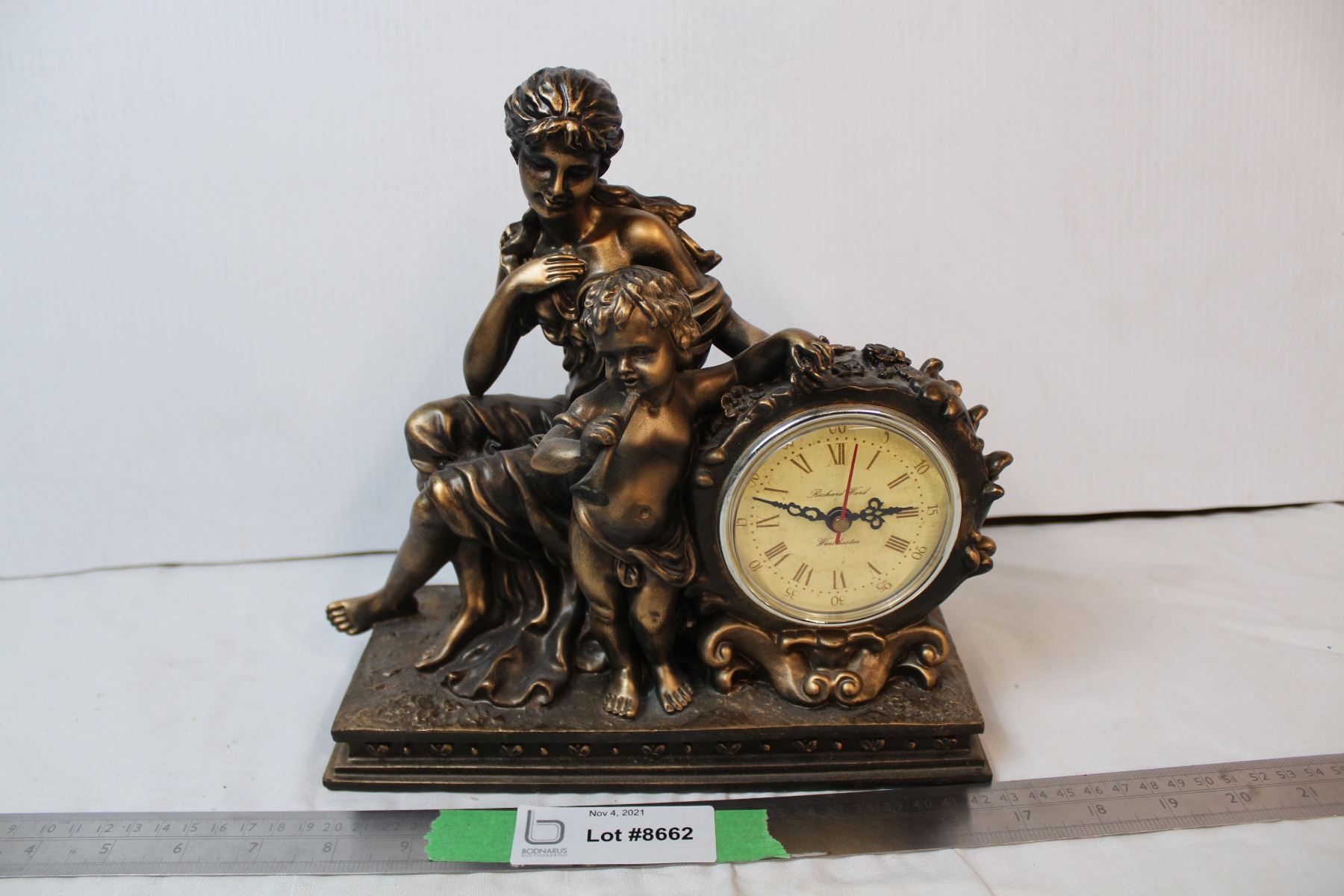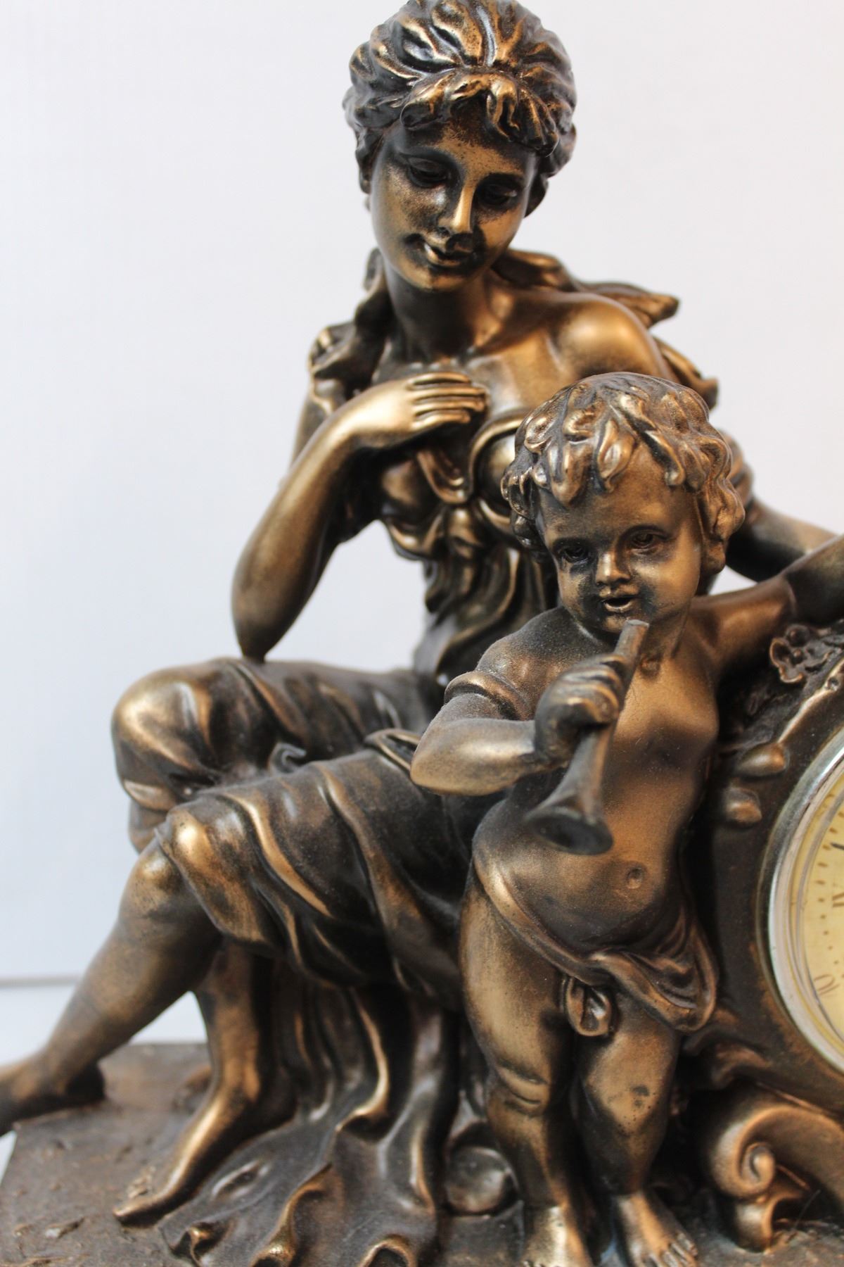 plaster clock with human figures