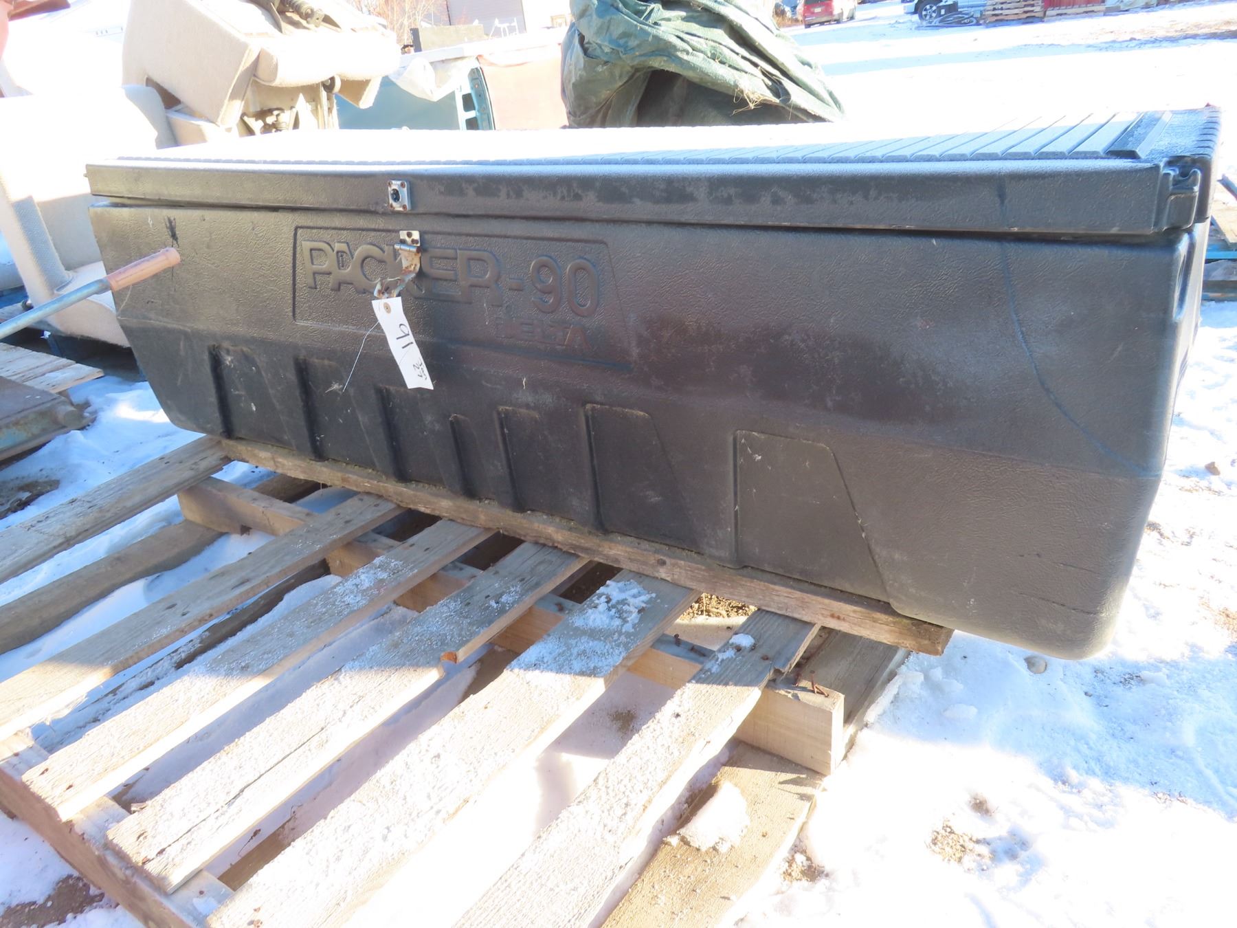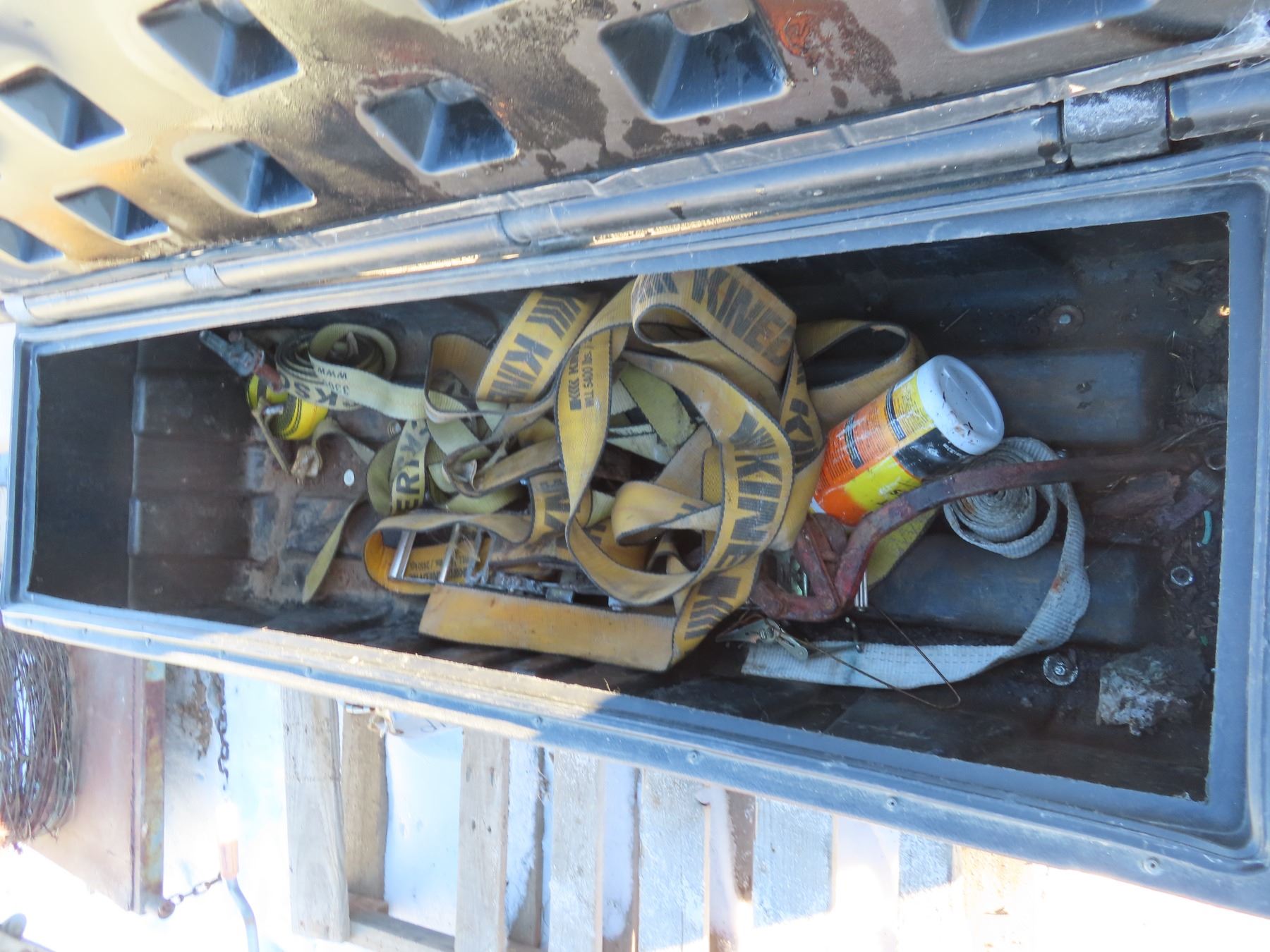 plastic truck tool box with misc straps inside