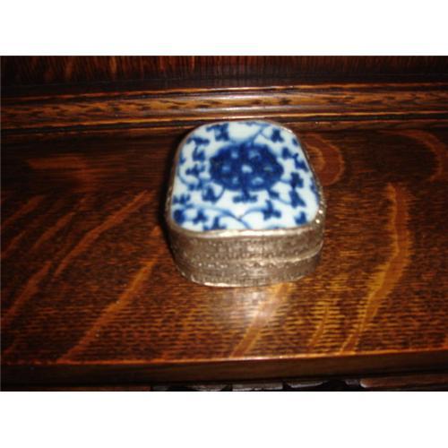 <tr><td>Title:porclain and silver snuff box, pill box</td></tr>