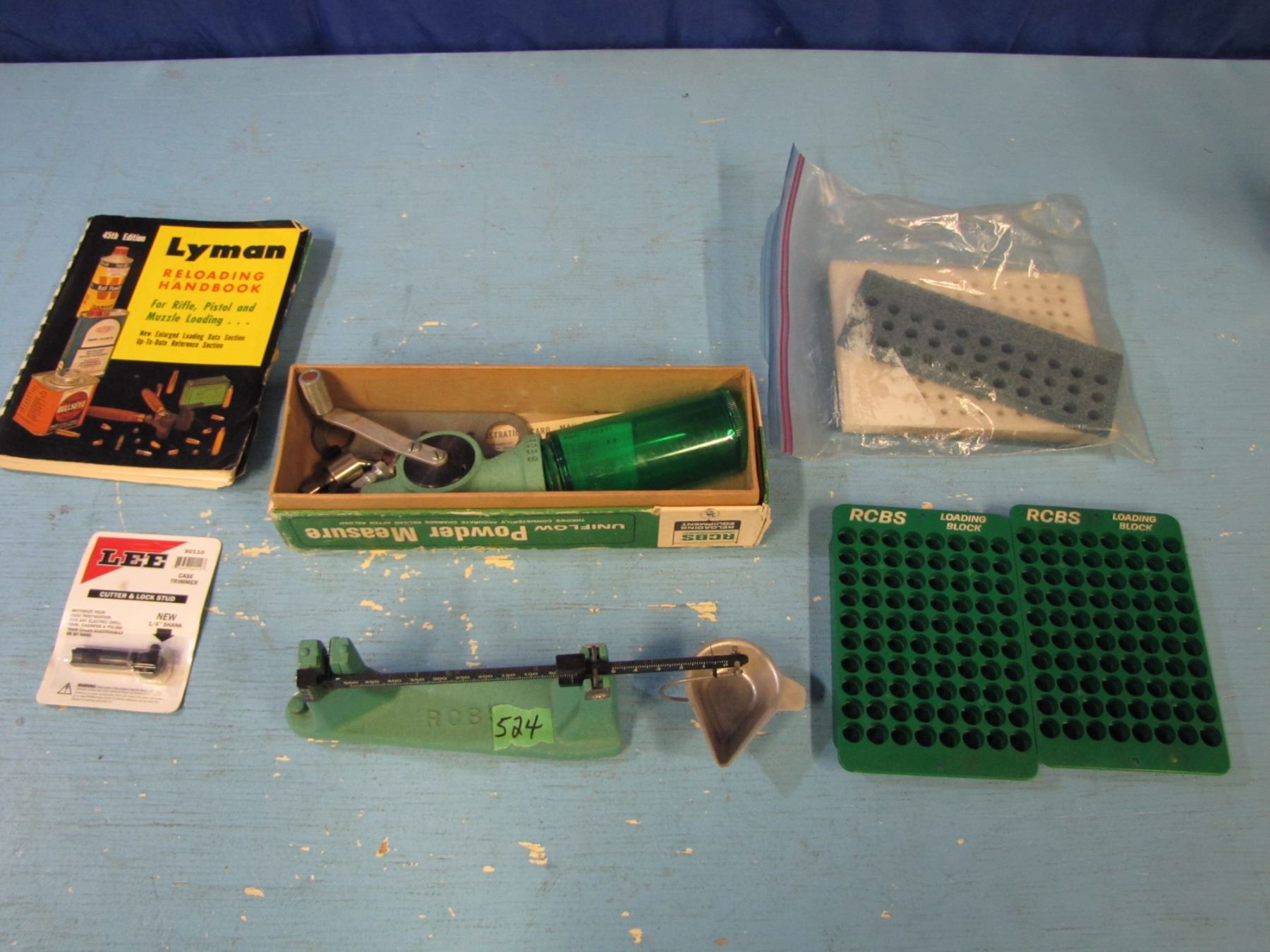 powder measure, scale, reloading blocks, handloading book, Cutter & Lock stud