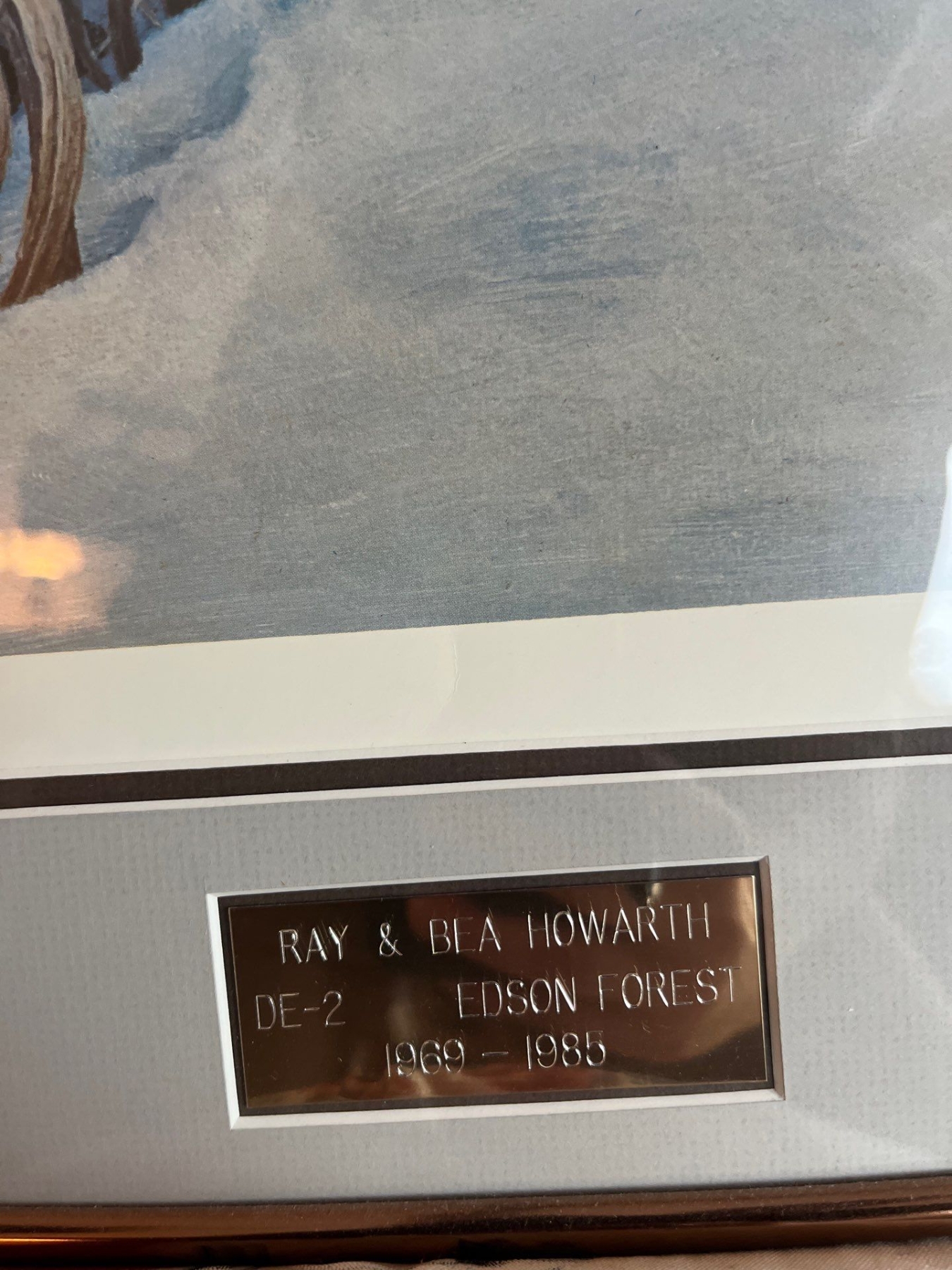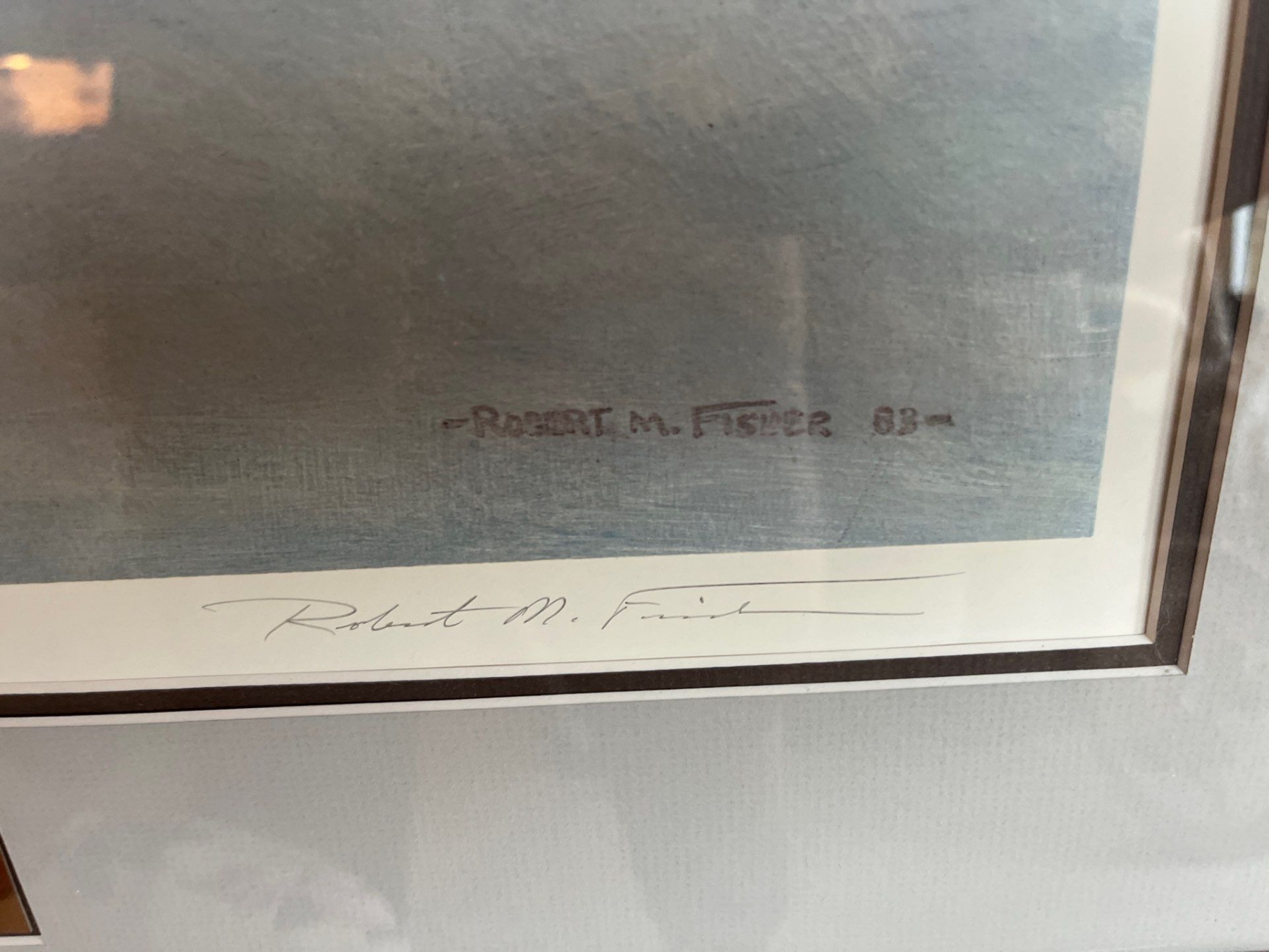 print by Robert M Fisher, 1983 Olds, Alberta, titled weasel and old car hand signed by artist limite