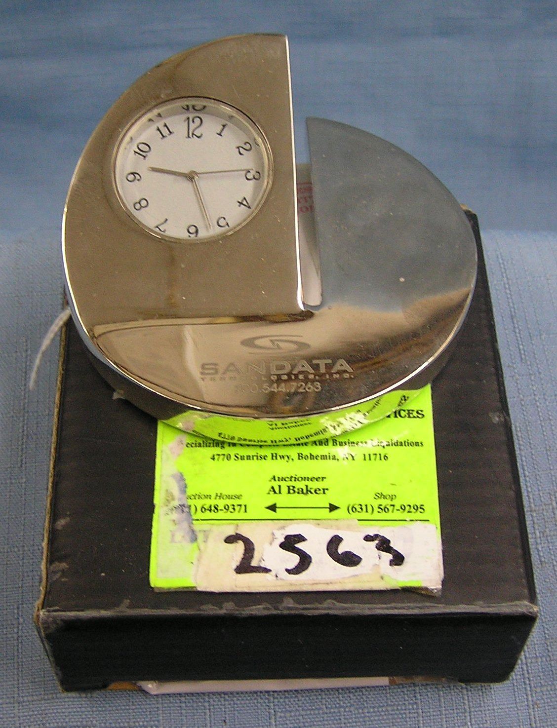 Modern advertising promotional clock by Sandata Technologies made of heavy chrome metal with original box est. value $40.00-$60.00