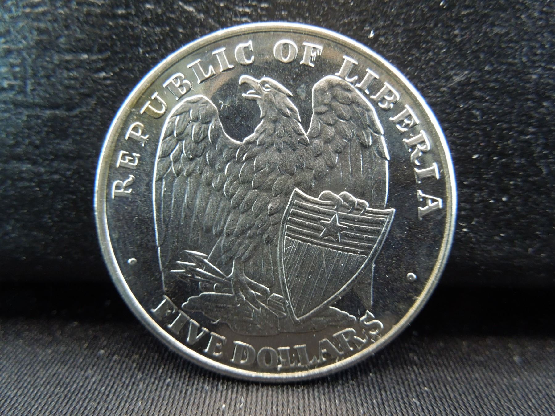 proof republic of Liberia five dollar coin commemorating the battle at ft Sumter
