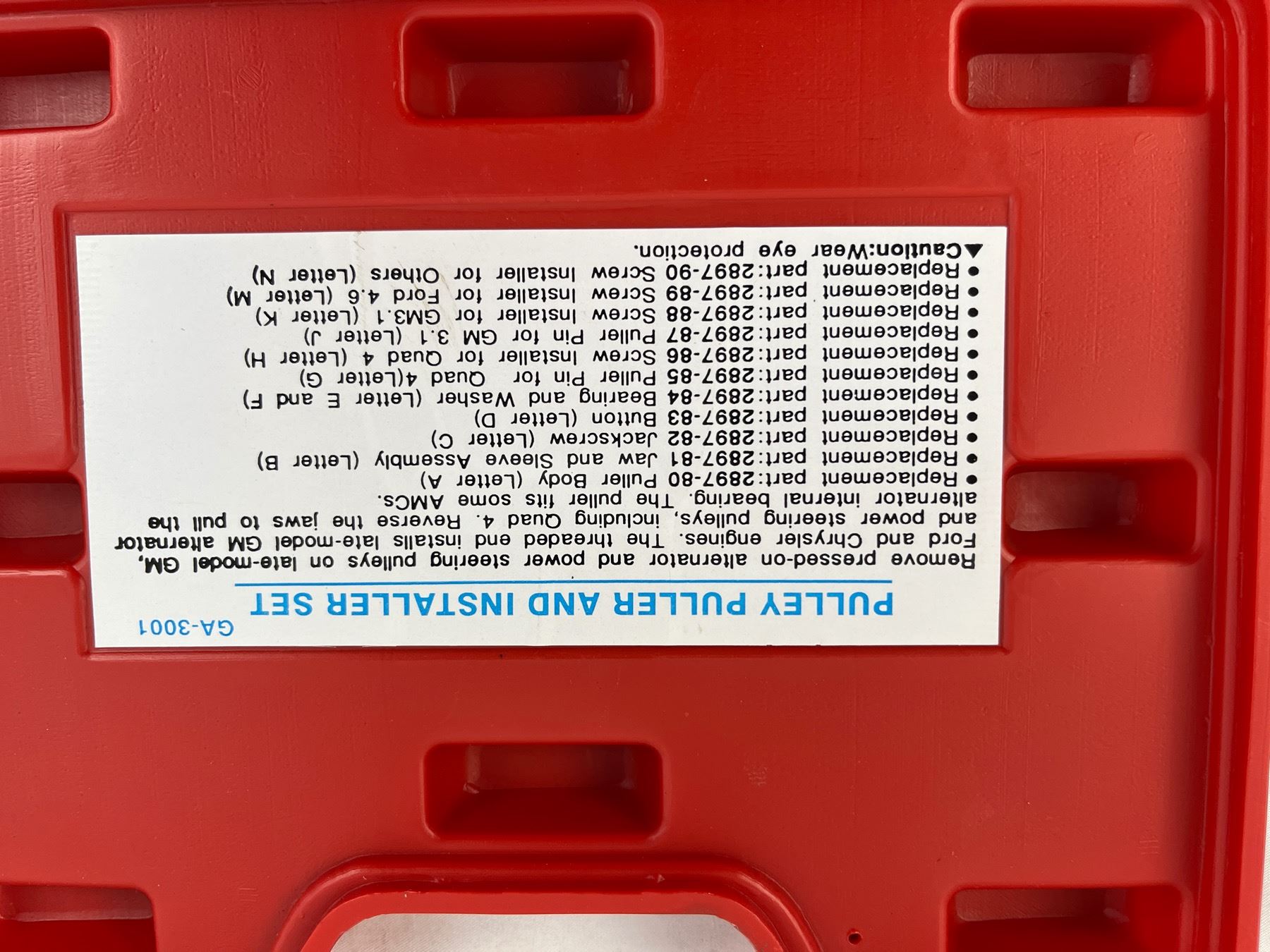for removal of pressed-on alternator and powersteering pulleys on late model GM, Ford, and chrystler engines.