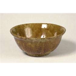 Iberville Potteries, circa 1885. Round with vertical groove design, with sepia spattered glazes.