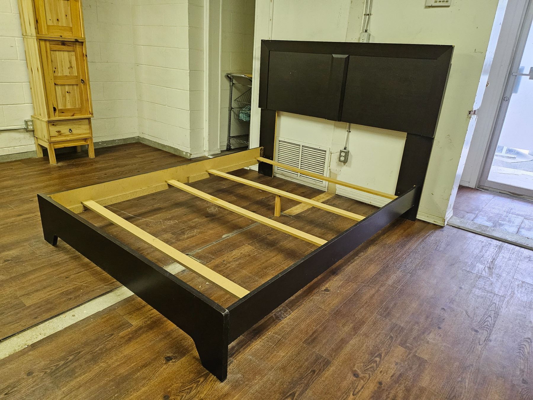 black queen size bed frame. good shape nice and solid. possibly matches previous black dresser