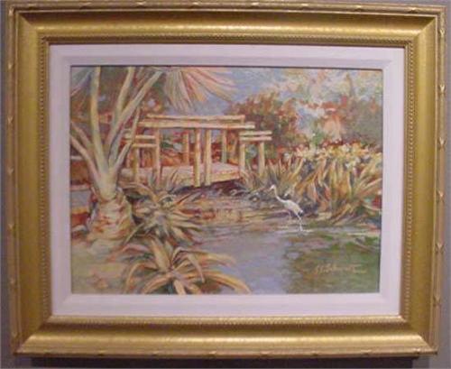 Carl Schwartz is a nationally recognized painter and print-maker and has lists of awards including the Logan Medal from the Art Institute of Chicago. He has had juried and invitational exhibitions at "Art Across America" sponsored by Mead Corporation. Schwartz's pieces are in many major placements in permanent collections throughout the United States, the Smithsonian Institute, Kemper Insurance, AT&T, Sears, Delta Airlines and Beatrice Foods as well as universities such as Michigan State, Ball State, Loyola, Nevada, Minnesota and Chicago. Schwartz teaches at Edison Community College and Florida Gulf Coast University.<BR>Quiet Pond is an acrylic painting of an egret visiting Schwartz's koi pond.