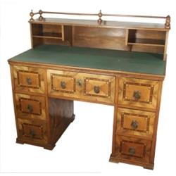 Fenyofa alapon cseresznye, diófa, svartni borítás, linea intarzia, hársfa, ébenfa. 7 db geometrikus intarziás fiókkal és utólagos felépítménnyel. Copf stílusban, XIX. sz. eleje