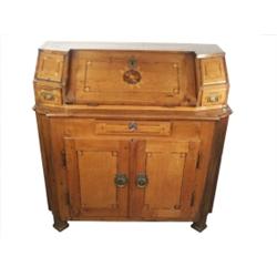 Tömör cseresznye, linea berakás, hársfa, ébenfa. A lenyitható ajtón virágmintás díszítés. Jobb oldala pótolt. Copf stílusú, XIX. sz. eleje