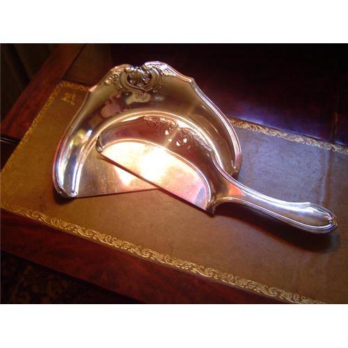 gorgeous mid 19 century sterling silver "ramasse miettes " [ it was used to clean the table cloth and remove all the crumbs in between the different course of a meal ] delicious roccoco decor on top and on the handle .