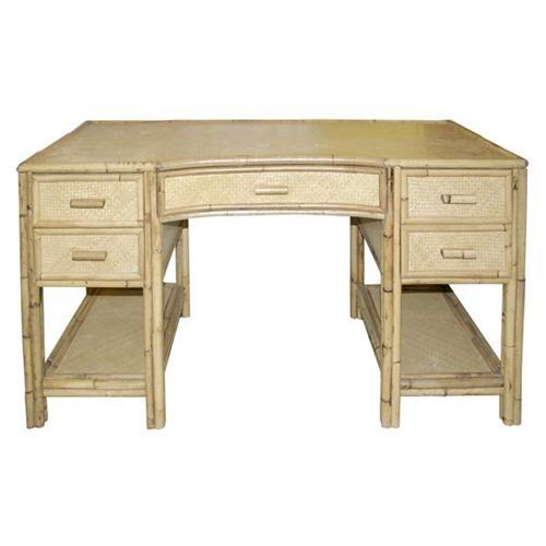 rattan desk, 5 drawers, large Art Deco form. (key: tropical, Hawaiian, coastal, outdoor furniture, mid century, modern, retro, vintage rattan furniture, bamboo, reed)