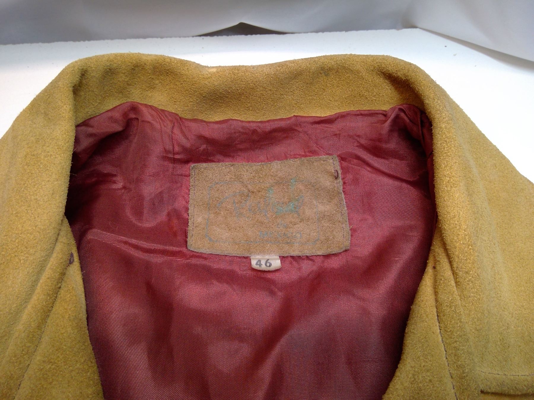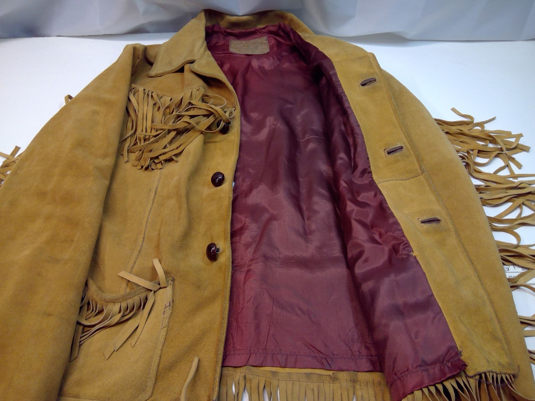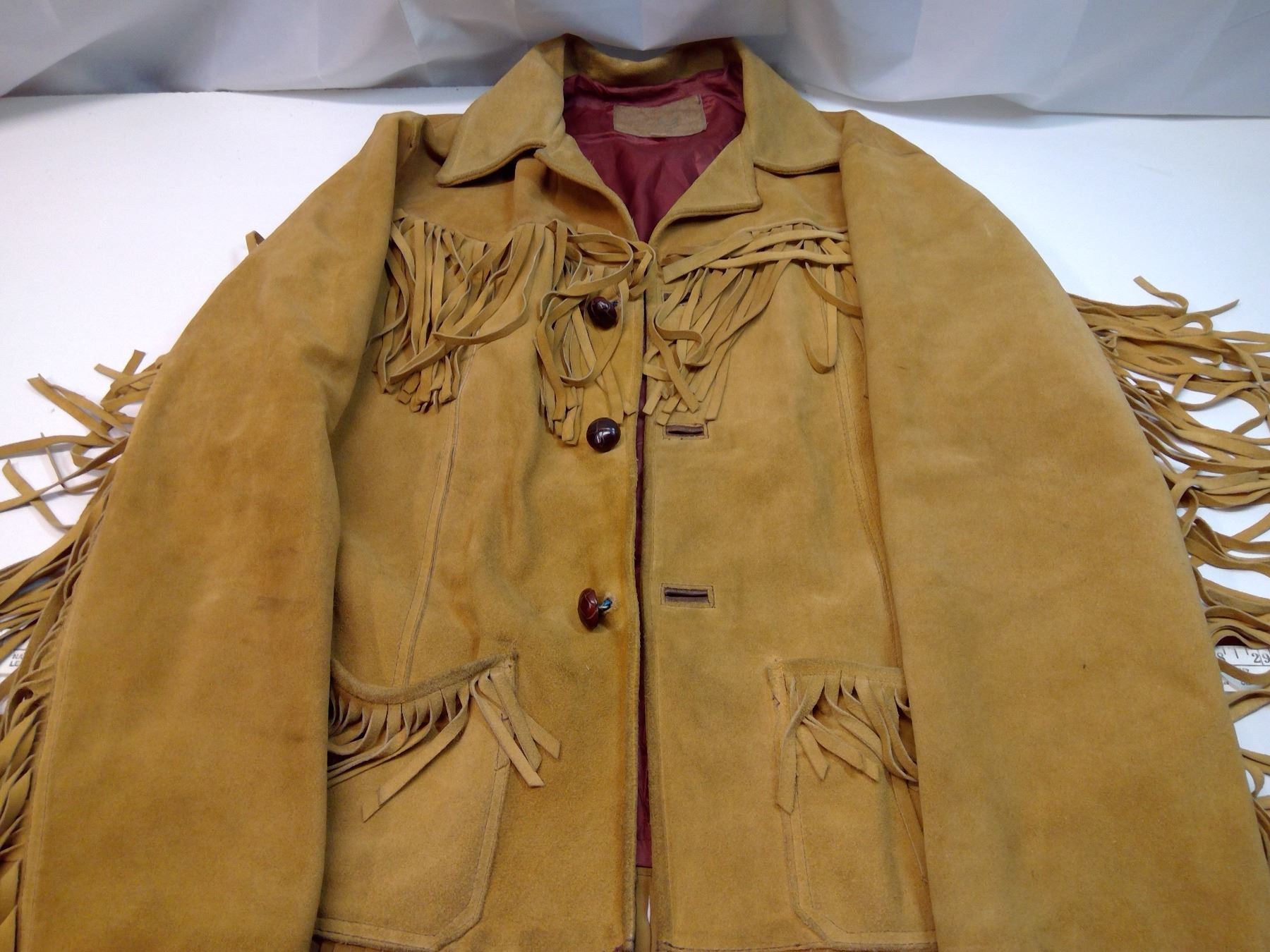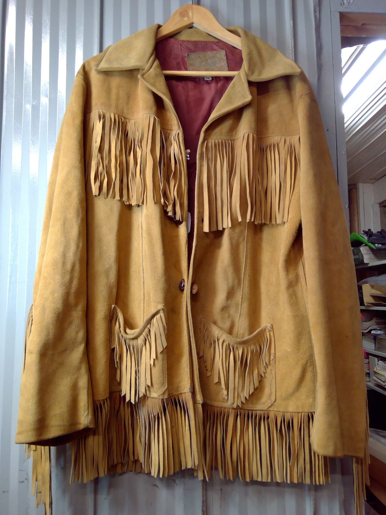 retro leather 1970's jacket fringe western jacket wooden buttons size 46