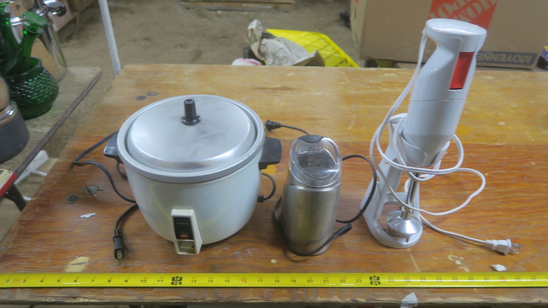 rice cooker, coffee grinder and immersion blender