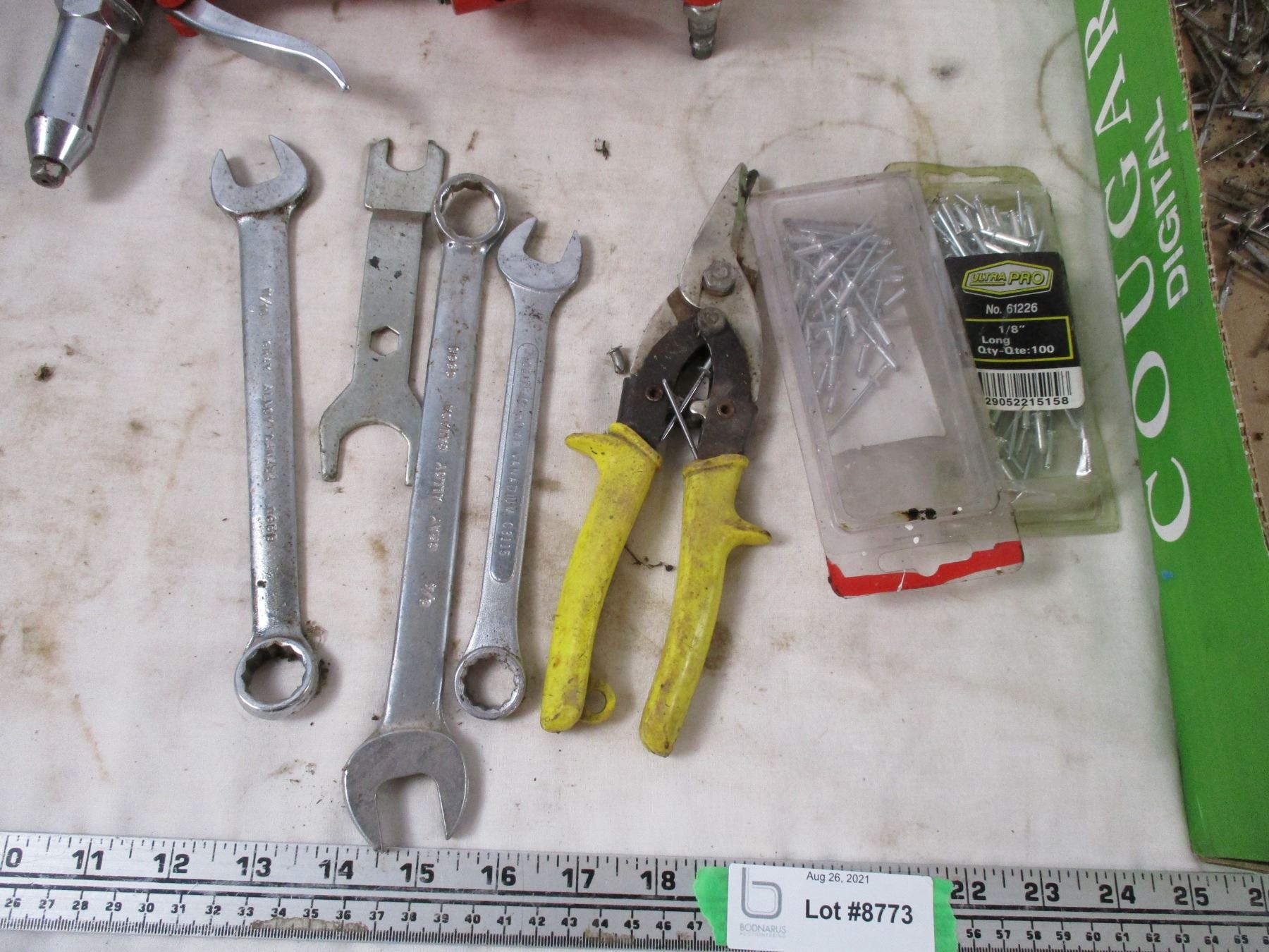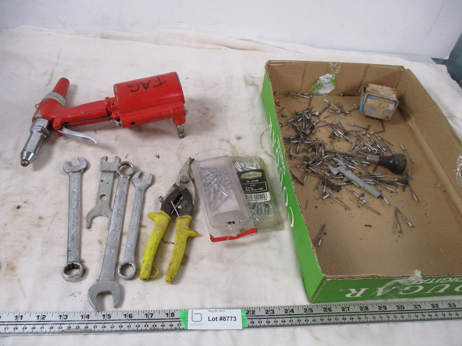 rivet gun, wrenches, misc