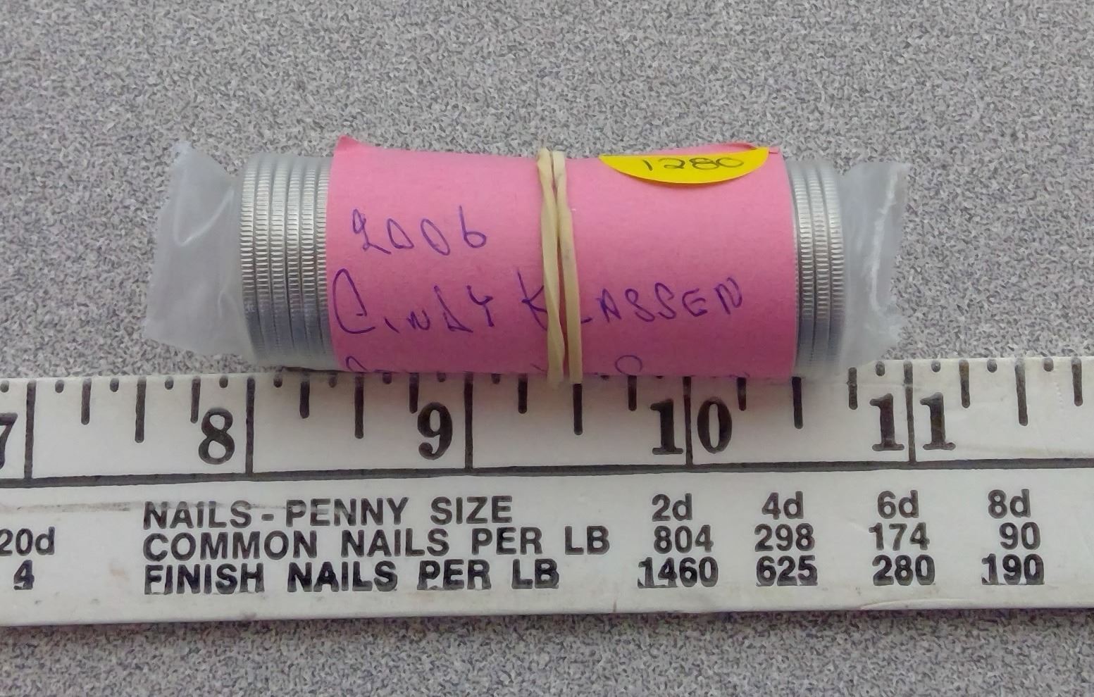 roll of 2006 Cindy Klassen quarters assorted coloured and plain