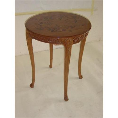 round table with carving arround in Art Nouveau style with floral marquetry inlaid (26.5DIA, 31H