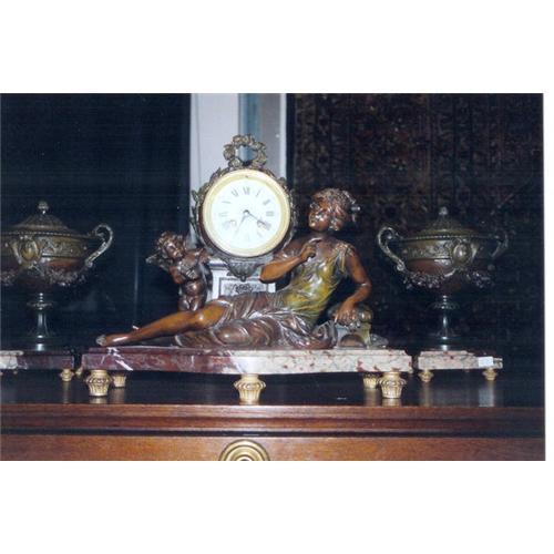 beautiful samack clock and a pair of vases, clock and vases standing on marble feet 19th century