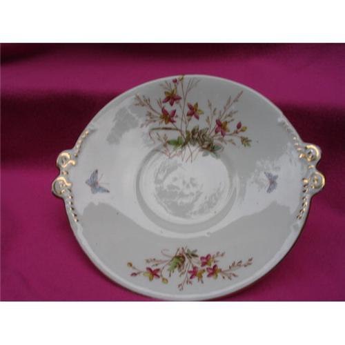 Unique...large and ever so pretty this delicate display of wild flowers and 2 butterflies adds to the charm of this large saucer.. The gold trim and flowers makes this a stunning piece of china.
