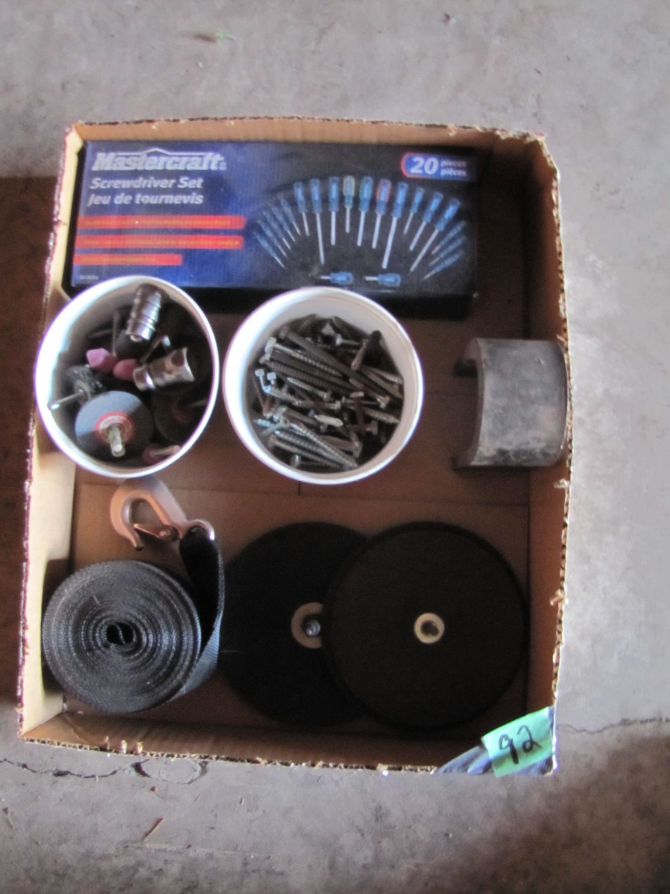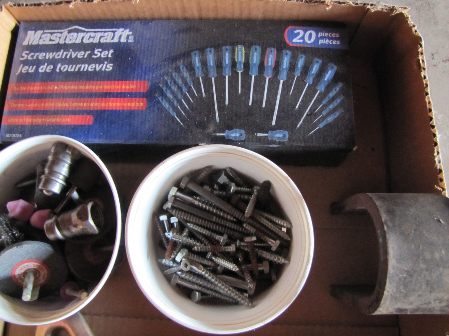 screwdriver set, lag bolts, magnet, e t c