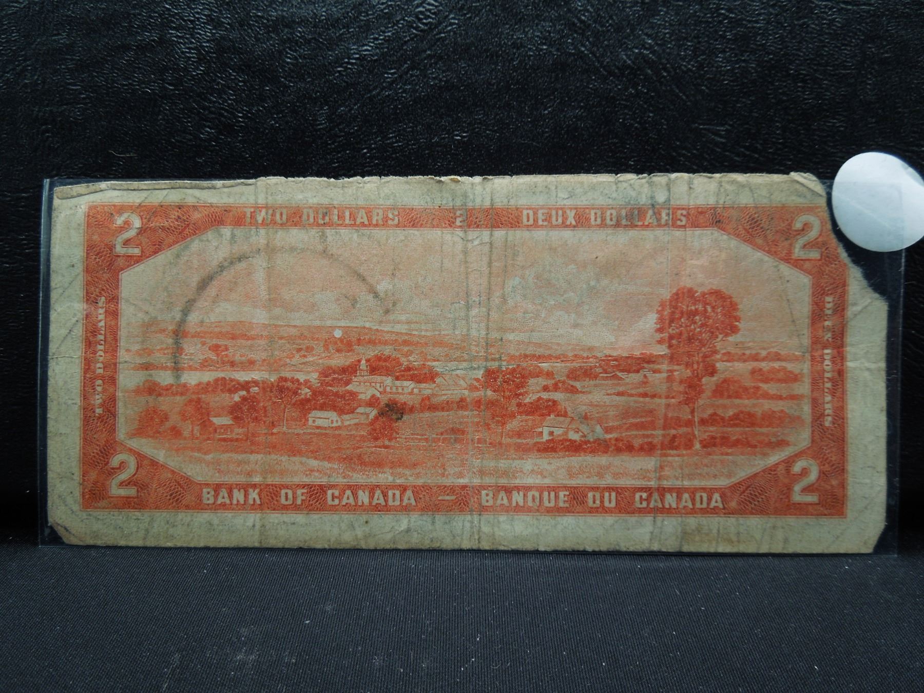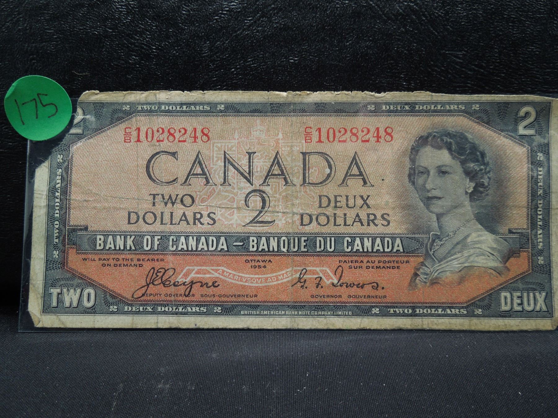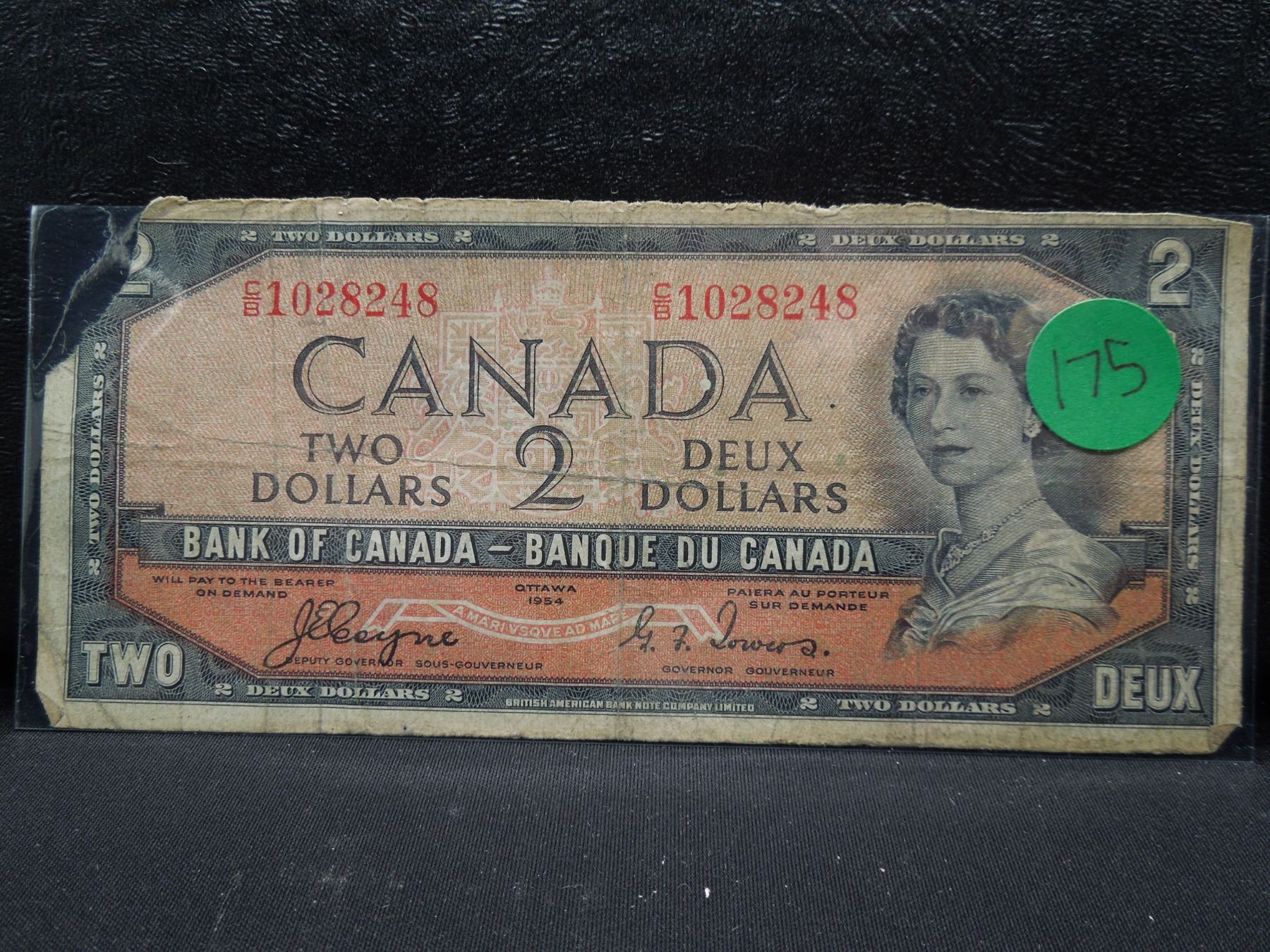 series of 1954 two dollar canadian bank note with the devil's face. This was an error in printing. The devil's face appears in the hair of queen elizabeth